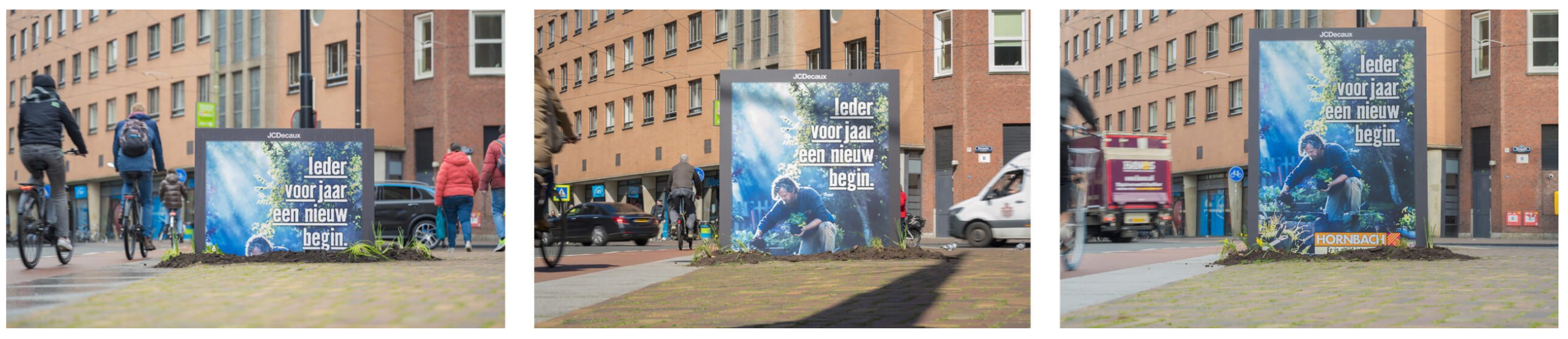 Als krokussen die na de winter voor het eerst hun koppie laten zien, verrijzen ook de reclameborden letterlijk uit de grond.